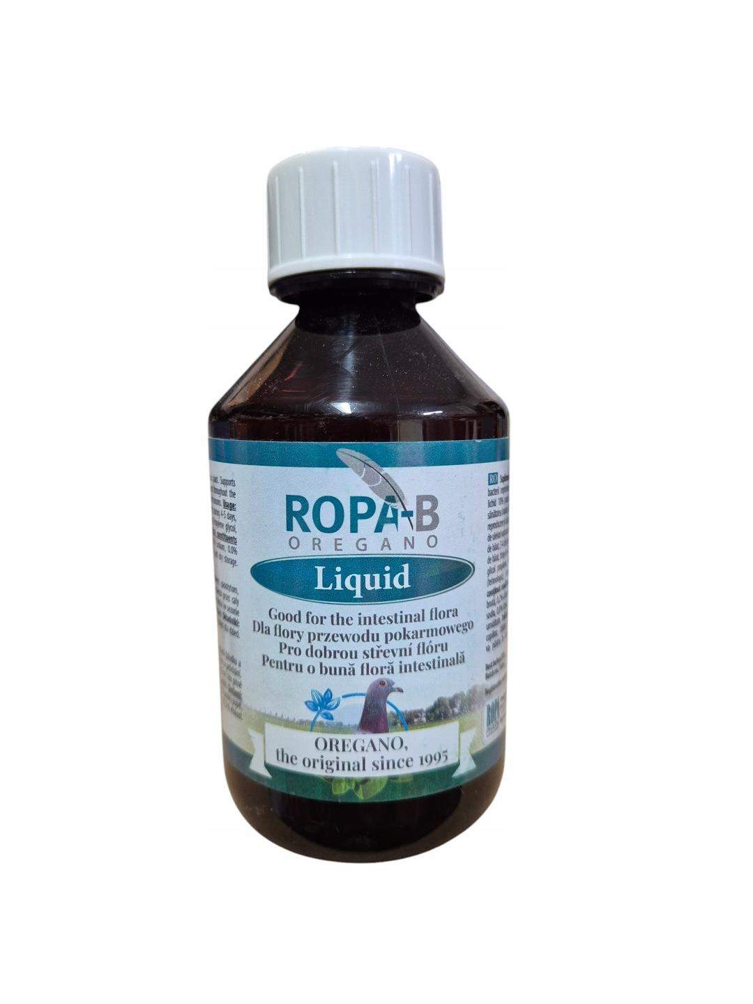 Skuteczność ROPA-B została potwierdzona wielokrotnie przez badania przeprowadzone przez TNO. Bakterie nie mają możliwości wykształcenia odporności na działanie Ropa-B, co czyni go niezwykle efektywnym w utrzymaniu zdrowia i regeneracji gołębi w każdym etapie, począwszy od przed, przez i po locie, a także podczas hodowli, pierzenia oraz w sezonie zimowym. Produkt ten opiera się na naturalnych olejkach eterycznych pozyskiwanych z rośliny oregano.