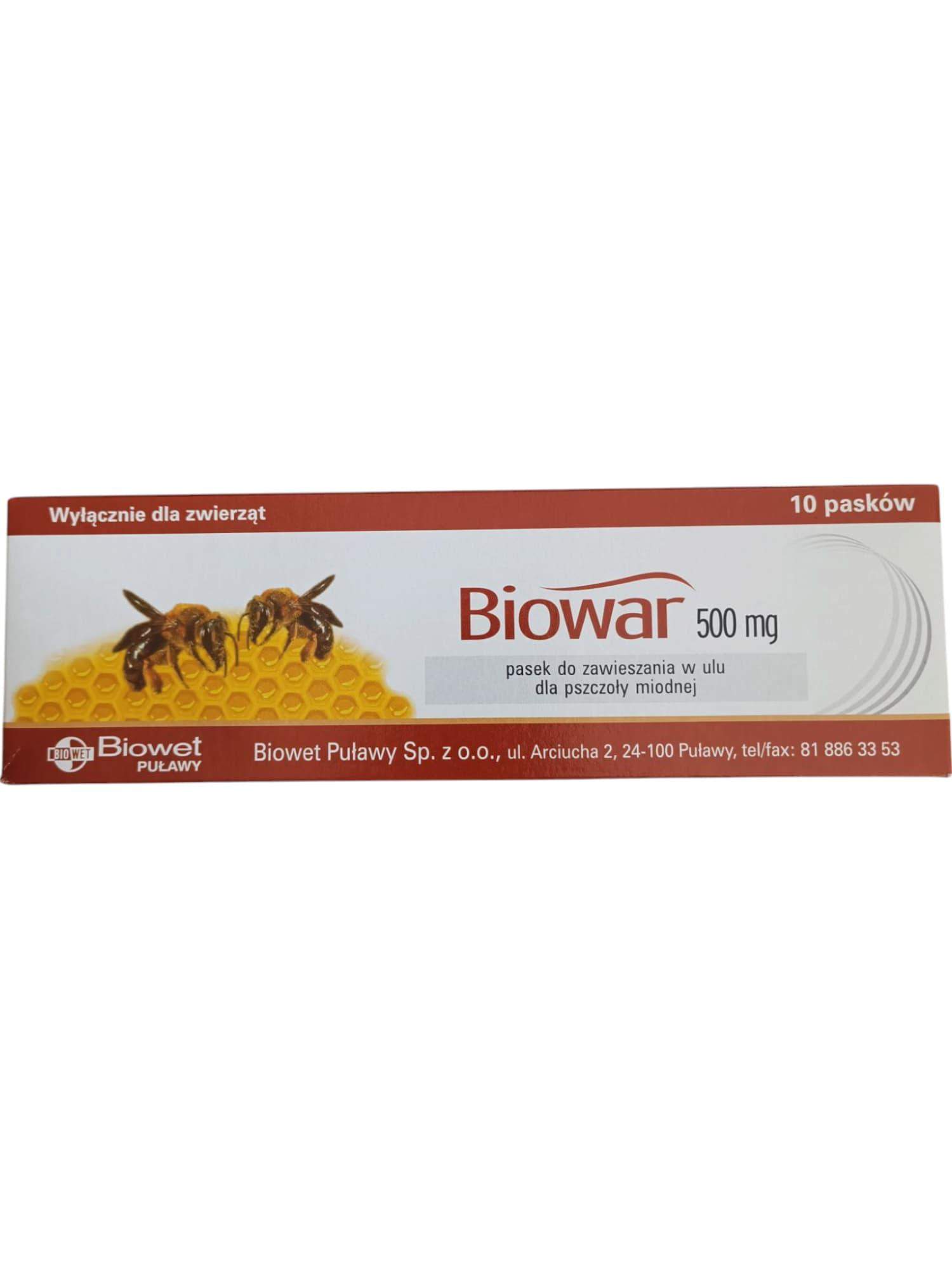 Biowar 500 mg, pasek do zawieszania w ulu dla pszczoły miodnej