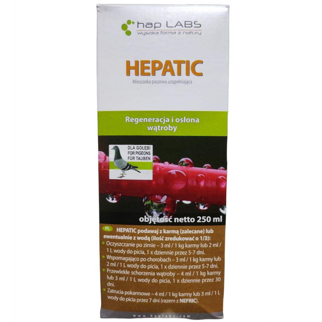 HEPATIC to mieszanina substancji aktywnych działających regenerująco i osłaniająco wątrobę gołębi i ptaków ozdobnych. Substancje te pobudzają czynność wątroby oraz wzmacniają błony komórek wątrobowych (działają ochronnie na hepatocyty). Dzięki temu poprawie ulegają wszystkie funkcje tego narządu, w tym np. zdolność odtruwania organizmu, ochrona przed szkodliwymi substancjami (toksyny, wolne rodniki, leki) oraz podniesie się ogólna kondycja i zdrowie organizmu.