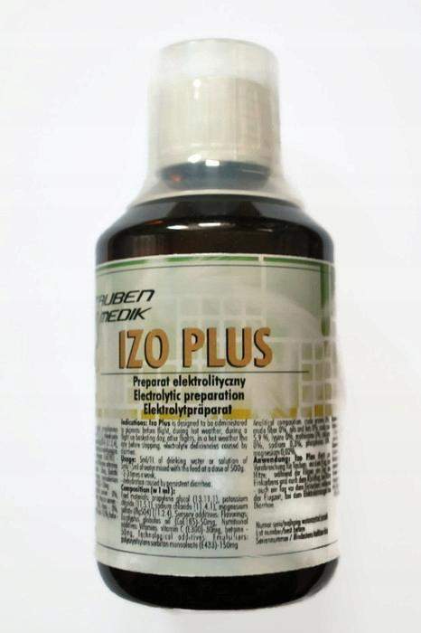 Izo Plus dla gołębi to połączenie elektrolitów: sodu, potasu, magnezu oraz betainy i witaminy C, które przywrócą równowagę elektrolitową organizmu zachwianą po locie. Zawarta w preparacie betaina pomaga utrzymać równowagę osmotyczną, witamina C działa ochronnie na naczynia krwionośne, zmiejsza wrażliwość na stres, oraz poprawia odporność. Izo Plus niweluje objawy niedoborów powstałych na skutek stresu (loty, wysokie temperatury, transport, biegunki). Preparat doskonale zatrzymuje wodę w organizmie, redukując pragnienie.