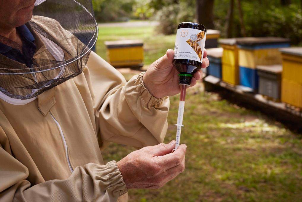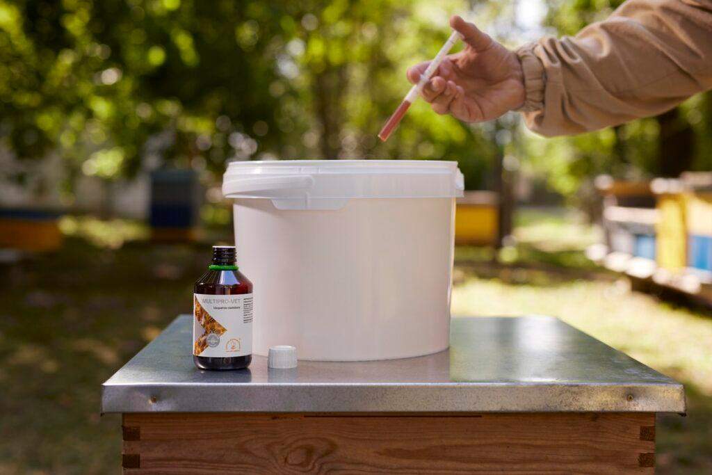 Podkarmiaczka – 3 ml na 1 litr syropu cukrowego lub inwertowanego dla 1 rodziny pszczelej.
