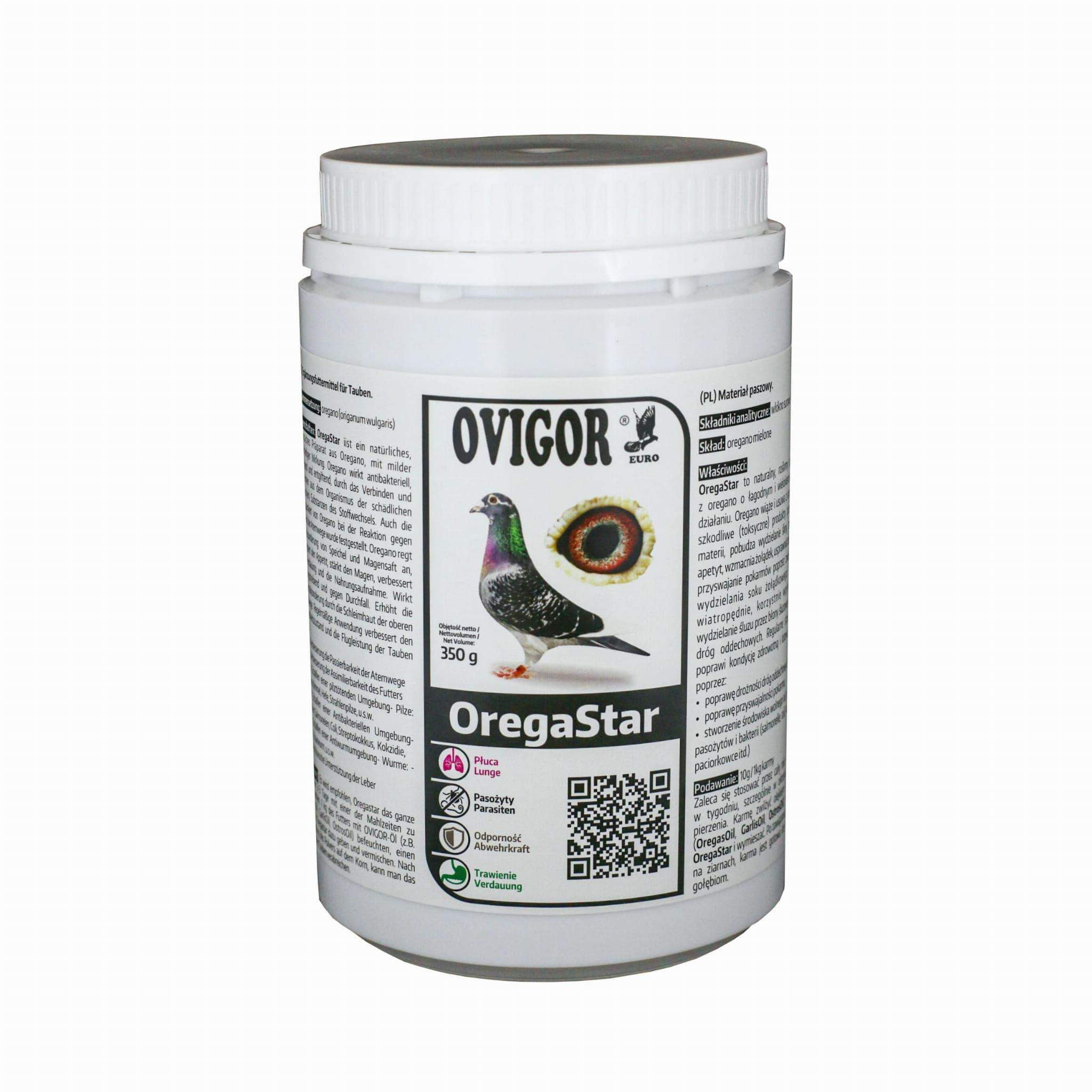 OregaStar to naturalny, roślinny preparat dla gołębi ze sproszkowanego oregano (origanum wulgaris) o łagodnym i wielokierunkowym działaniu.