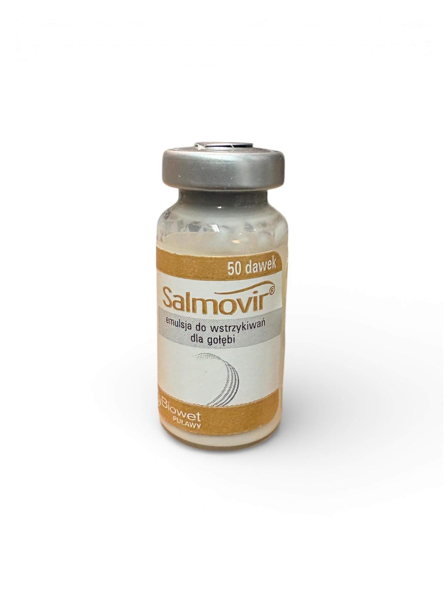 Dawkowanie: Dawka dla jednego gołębia wynosi 0,2 ml emulsji olejowej, którą należy wstrzyknąć podskórnie w 1/2 części szyi. Podstawowe szczepienie gołębi młodych oraz nieimmunizowanych przeciw salmonelozie, paramyksowirozie obejmuje dwie iniekcje w odstępie 4 tygodniowym. Pierwsze szczepienie należy wykonać w 3-4 tygodniu życia, a drugie szczepienie nie później niż 3 tygodnie przed lotami. Szczepienie gołębi dorosłych wielokrotnie uodparnianych szczepionką Salmovir należy wykonywać jednorazowo corocznie na 2 – 3 tygodnie przed parowaniem, wystawami. Zalecenia dla prawidłowego podania Do szczepień używać jałowych igieł oraz strzykawek. Opakowania ze szczepionką po wyjęciu z lodówki należy ogrzać w temperaturze pokojowej i przed przystąpieniem do zabiegów dokładnie wymieszać. W trakcie szczepienia okresowo mieszać zawartość opakowania. Zabiegi wykonywać przy temperaturze zewnętrznej nie niższej niż00C. Opakowanie raz rozpoczęte nie może być przechowywane i stosowane ponownie. OKRES KARENCJI : Zero dni.