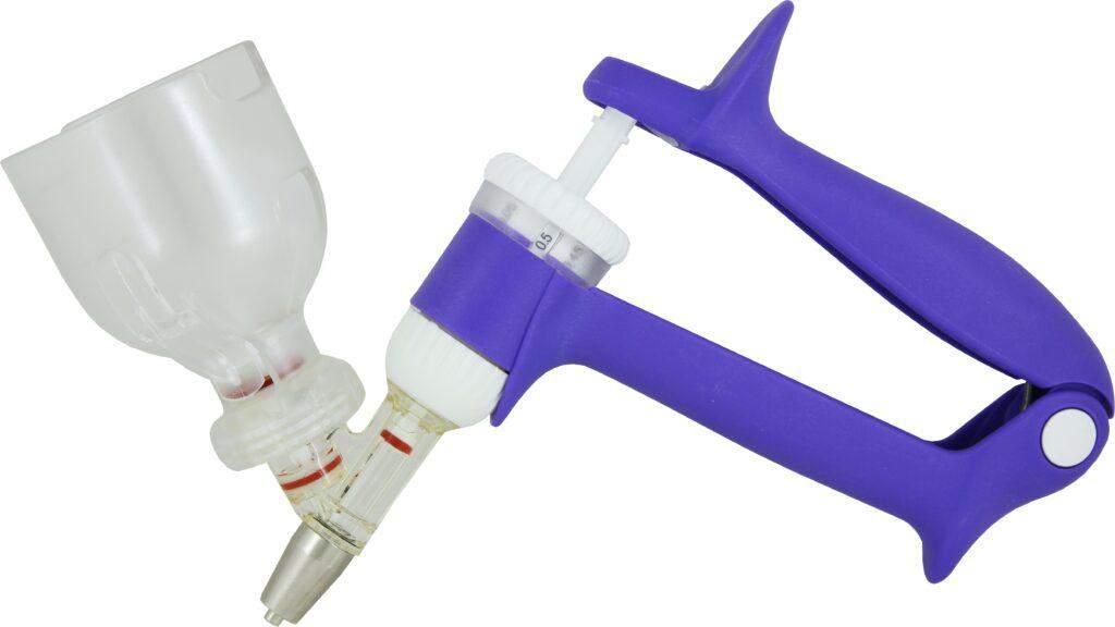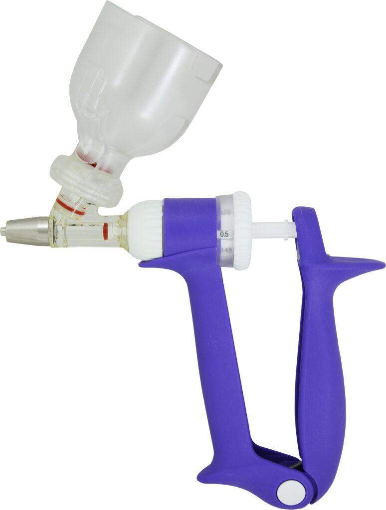 • Łatwość użycia oraz dokładność dawkowania nawet przy małych objętościach.• Wygodne pokrętło umożliwiające ustawienie dawki – z możliwością regulacji w zakresie od 0,05 ml do 0,5 ml (co 0,05 ml).• Ergonomiczna konstrukcja i wygodny uchwyt zapewniają mniejszą rozpiętość dłoni, gwarantujące mniejsze zmęczenie – zwłaszcza podczas wykonywania serii szczepień.• Specjalna konstrukcja umożliwia łatwe usuwanie pęcherzyków powietrza z cylindra, zwiększając precyzyjność dawkowania.• Ulepszona konfiguracja zaworu zapewnia dokładne napełnianie i precyzyjną aplikację zadanej dawki.• Możliwość gotowania cylindra w wodzie zapewnia czystość i sterylność po użyciu.• Złącze Luer-Lock umożliwia dopasowanie wszystkich dostępnych na rynku igieł.• W zestawie z dwoma adapterami do mocowania butelki oraz dwiema zapasowymi uszczelkami.